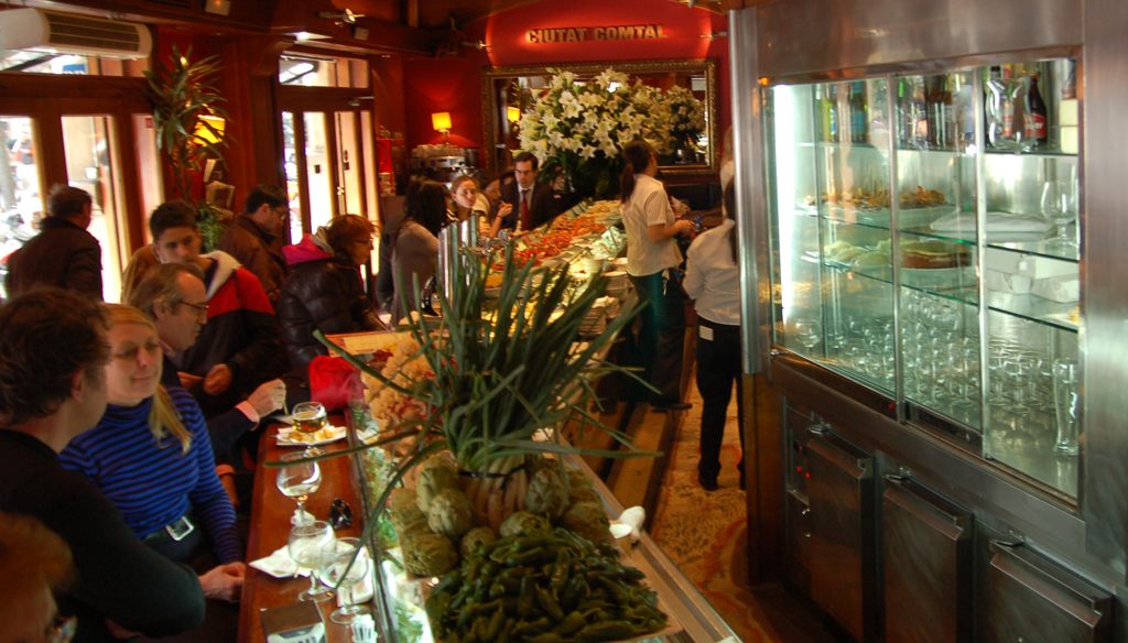 Ciutat Comtal är en kontinentalt, traditionell klassiskt tapas och bar där man känner att seklerna sitter i väggarna . Traditionellt och riktigt riktigt bra. Pröva den lilla grillade kalv tapasen eller bara peka på något som är framdukat på bardisken. Ligger uppe i shoppingstråket nära flera av Gaudis byggnader.